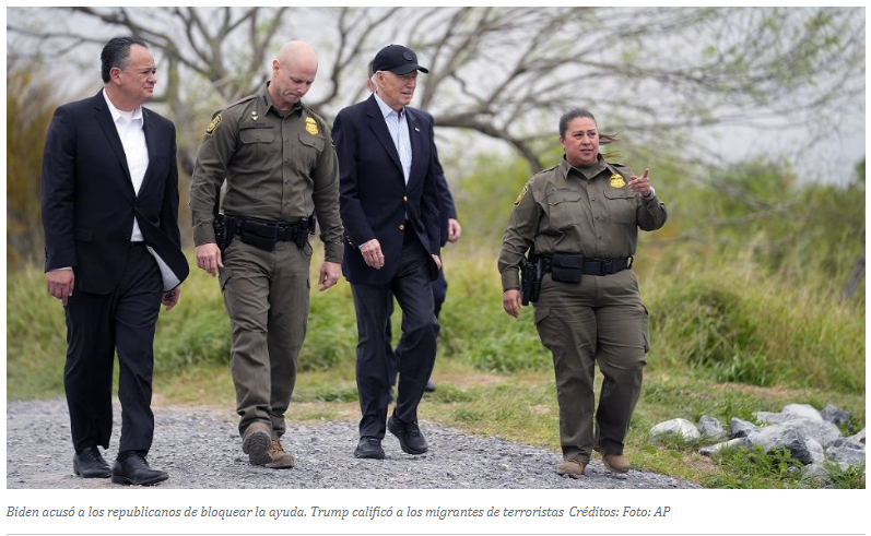 Internacional Biden y Trump luchan por el voto fronterizo en Estados... Idea Fuerza 01/03/2024 Biden acusó a los republicanos de bloquear la ayuda. Trump calificó a los migrantes de terroristas A 500 kilómetros uno...